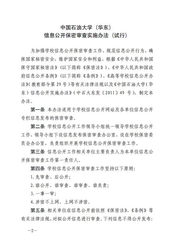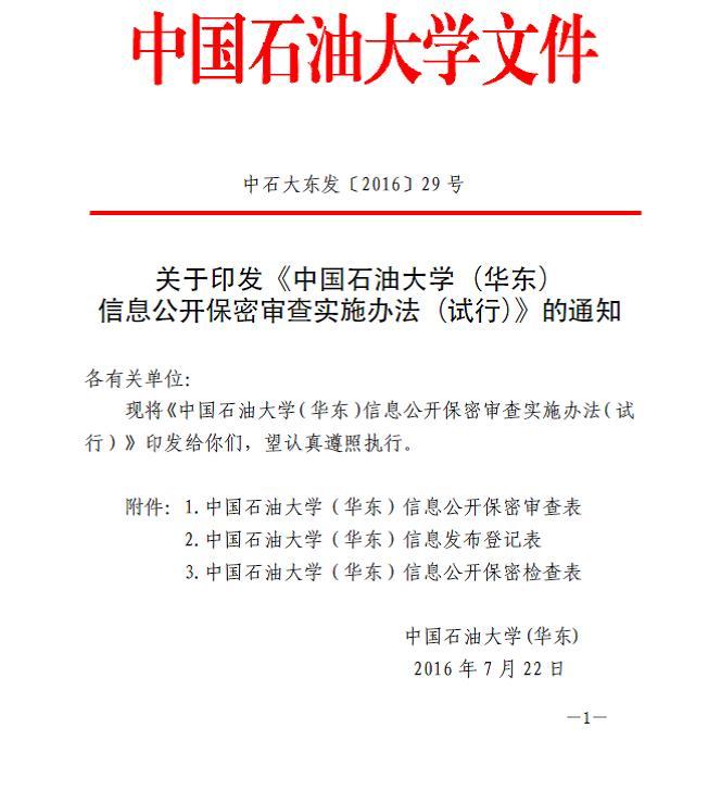关于印发《中国石油大学(华东)信息公开保密审查实施办法(试行)》的通知