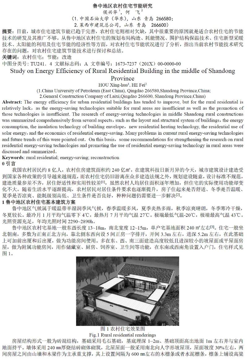 鲁中地区农村住宅节能研究
