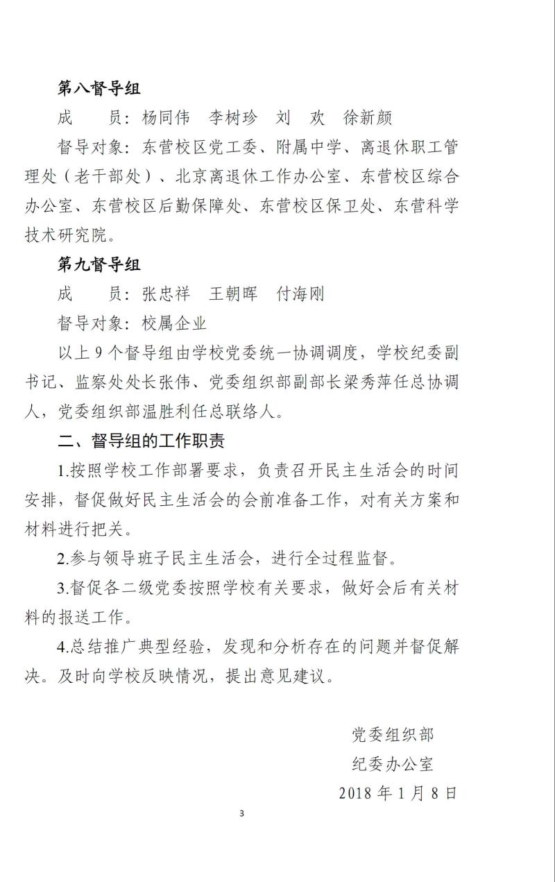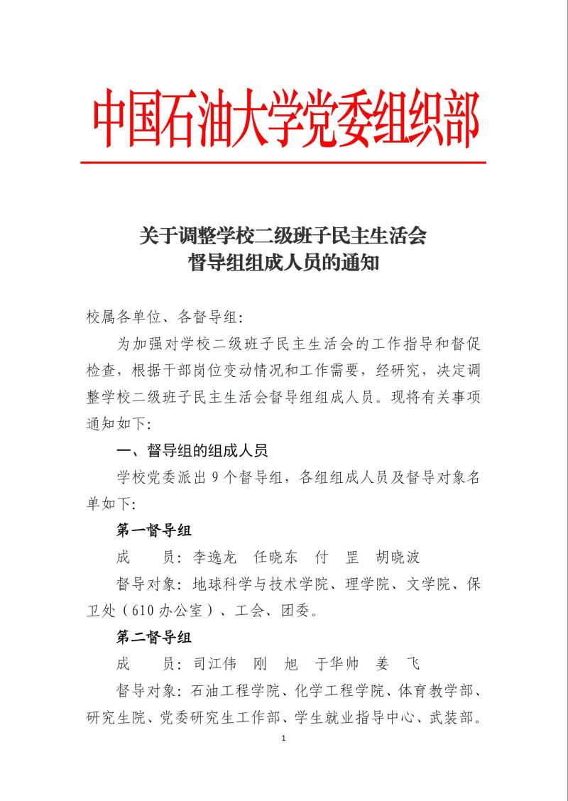 关于调整学校二级班子民主生活会督导组组成人员的通知