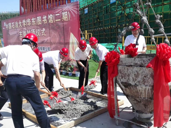 8月30日上午,万里晴空,惠风和畅,随着最后一车混凝土的浇筑完成,中国石油大学(华东)图书馆(二期)工程顺利完成主体封顶,施工现场鞭炮齐鸣,掌声阵阵,这标志着项目施工取得了重要的阶段性成果。