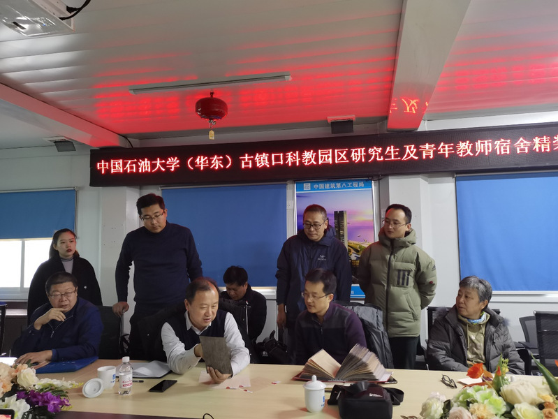 12月14日,基建处会同设计单位、施工单位、监理单位召开了研究生及青年教师宿舍、综合教学楼的室内装修材料确定会。
