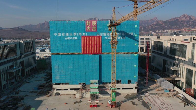 2021年12月28日上午,伴随着最后一车混凝土浇筑完成,在建设单位、监理单位及施工单位的共同见证下,中国石油大学(华东)古镇口校区综合教学楼工程顺利完成主体结构封顶,这标志着古镇口校区综合教学楼工程施工取得了重要的阶段性成果。