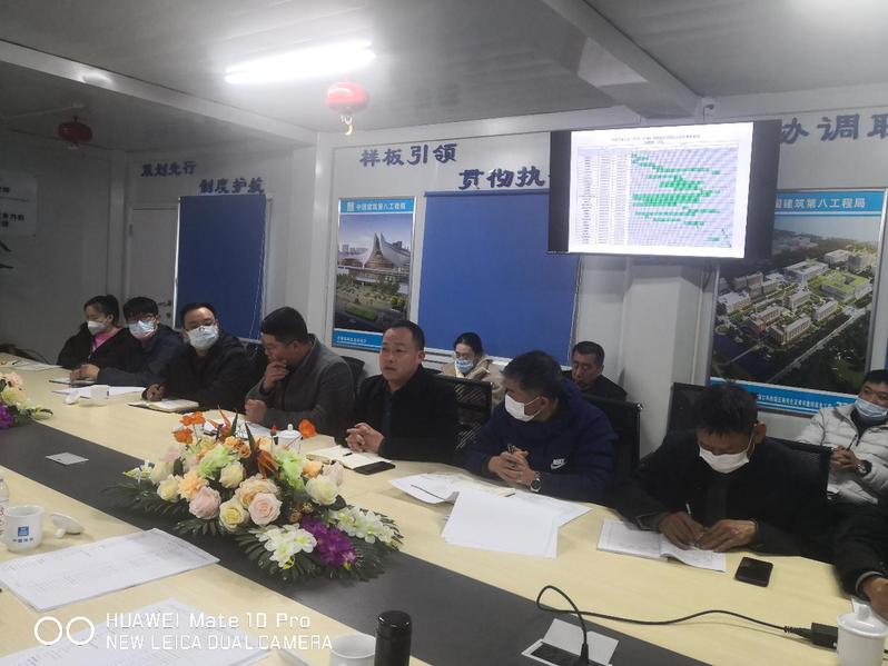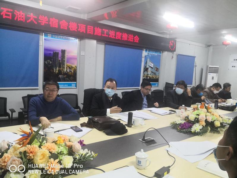 中建八局一公司汇报了项目施工计划、现阶段重点工作和需要协调解决的问题,青岛华鹏工程咨询集团有限公司就工程安全、质量、进度和现场管理等方面存在的问题进行了总结要求,山东中石大工程设计有限公司就现场存在的技术问题进行了交流。