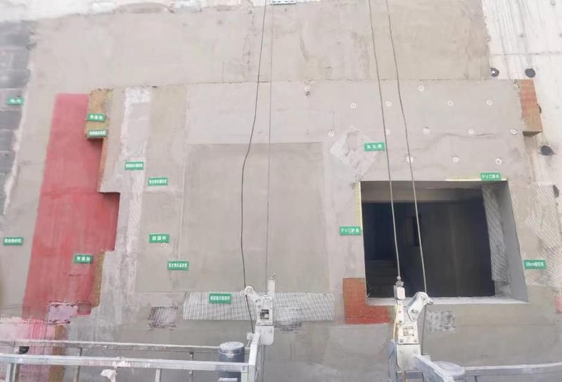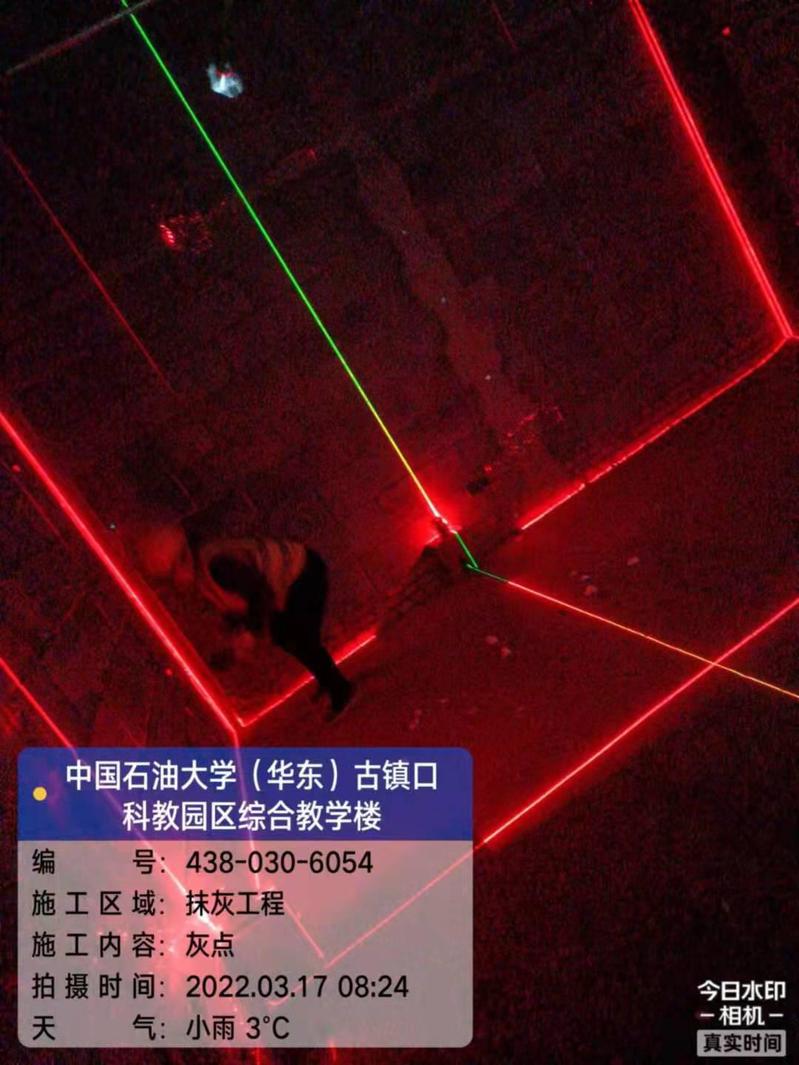 2.内墙抹灰前为保证房间方正,采用四台高精度红外水平仪同时进行测量放线,保证房间尺寸精度。腻子施工前,为保证阴阳角顺直方正,采用加设阳角条、红外水平仪垂直找角。