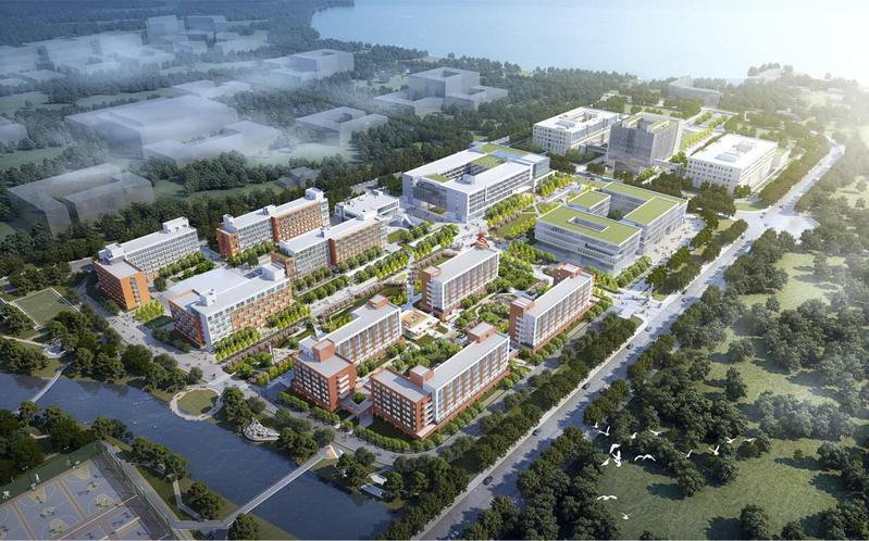 主楼工程施工基本完成,进入收尾阶段,包括设备调试、维修整改、卫生保洁等工作,进入竣工验收阶段。外部配套设施及绿化工程正在进行。