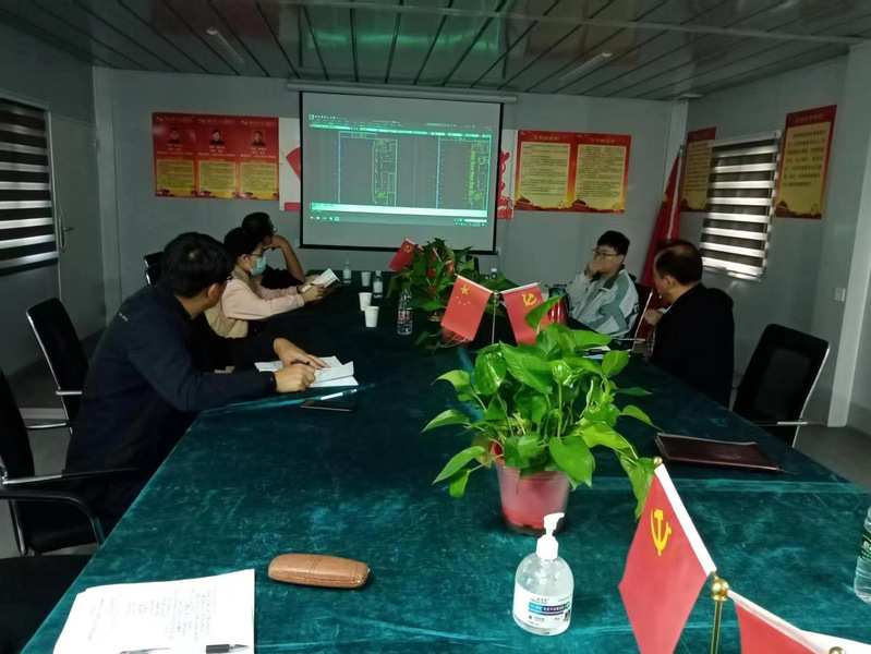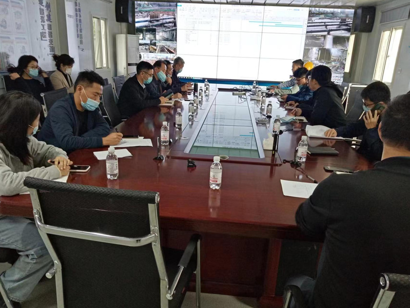 基建处领导带领技术科、工程科人员与城管局一起复核进度计划,对绿化图纸进行审查。