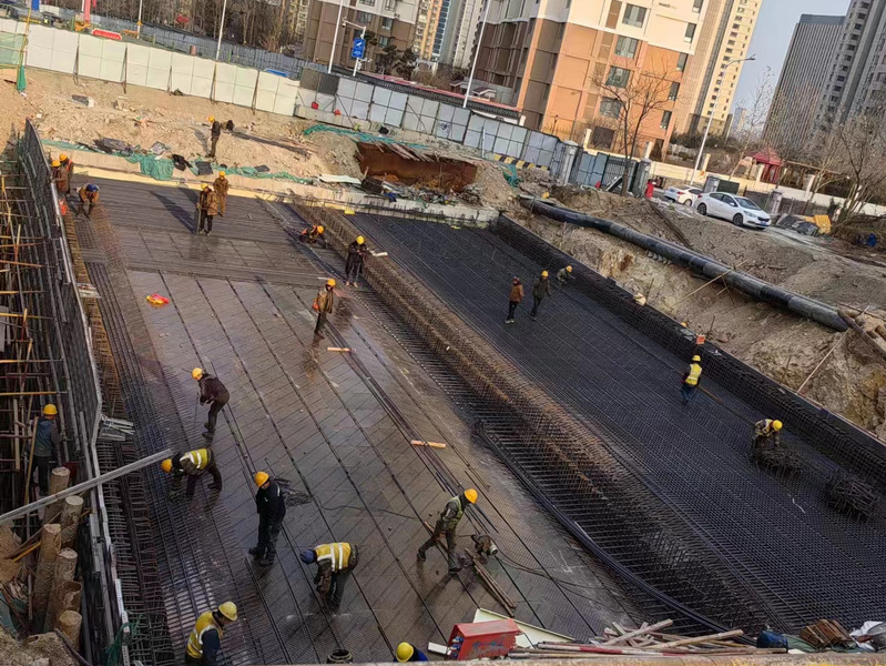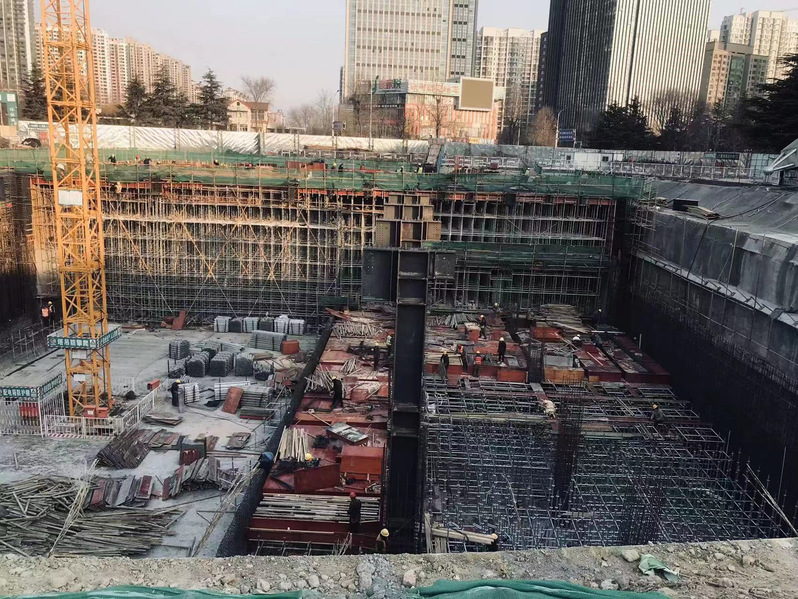 后浇带北侧完成一层脚手架搭设,南侧完成筏板钢筋的绑扎和浇筑。基建处领导带领技术科、工程科进行精装幕墙和设备专业审查。