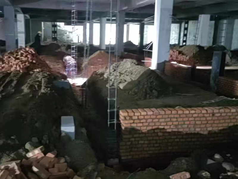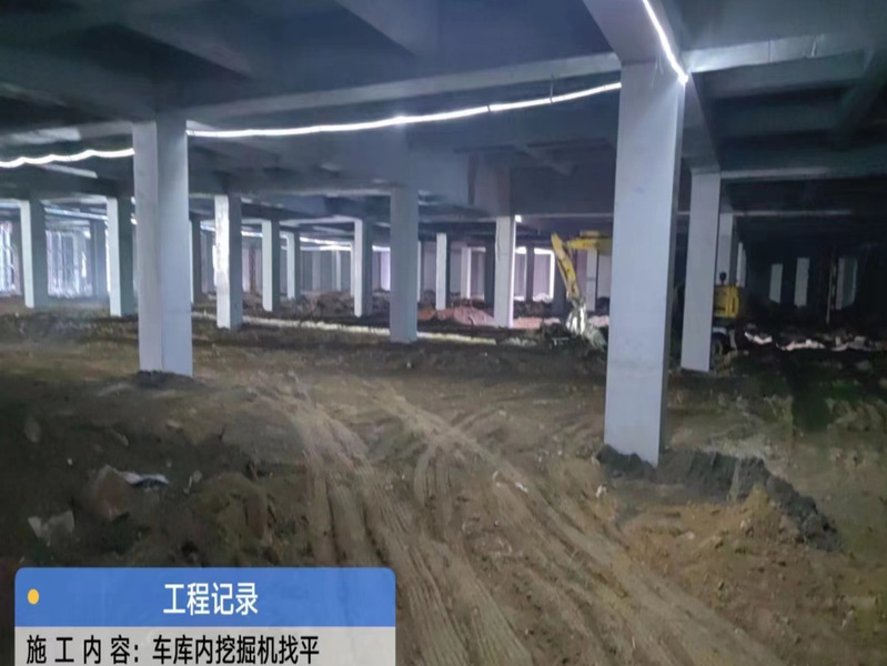 地下车库内部进行土方回填完成,进行二次结构砌筑。