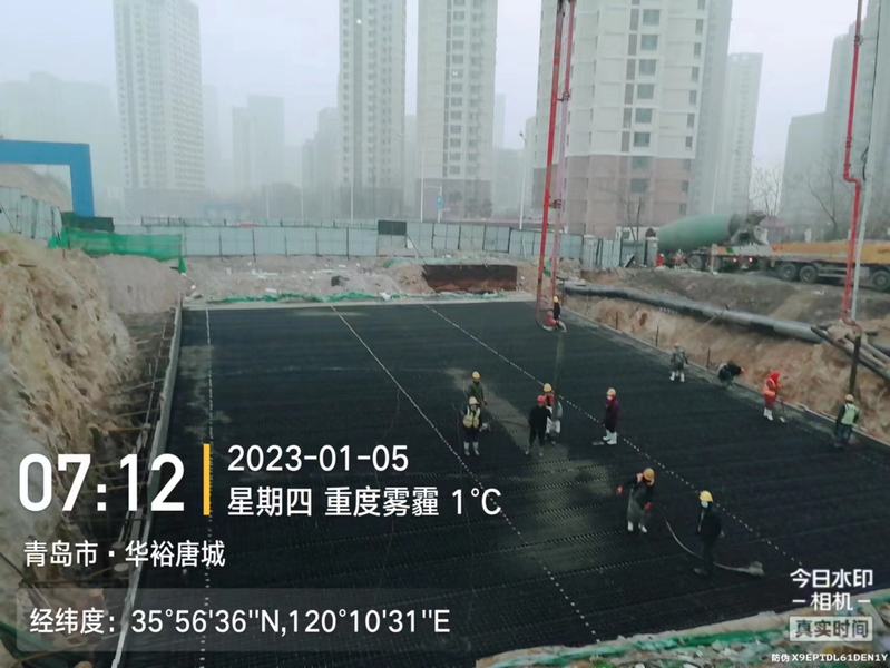 地下车库实景鸟瞰图:2022年12月31日完成最后一块混凝土浇筑,顺利封顶。目前进行防水施工,春节期间回填;2023年3月初完成回填,4月绿化,与计划一致。