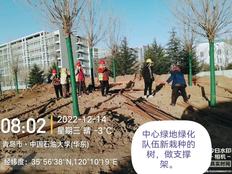 地下车库实景鸟瞰图: 完成部分乔木种植,完成弱电管线施工,春节后种植灌木和地被。基建处一定配合好后勤管理处,做好中心绿地绿化提升工作。