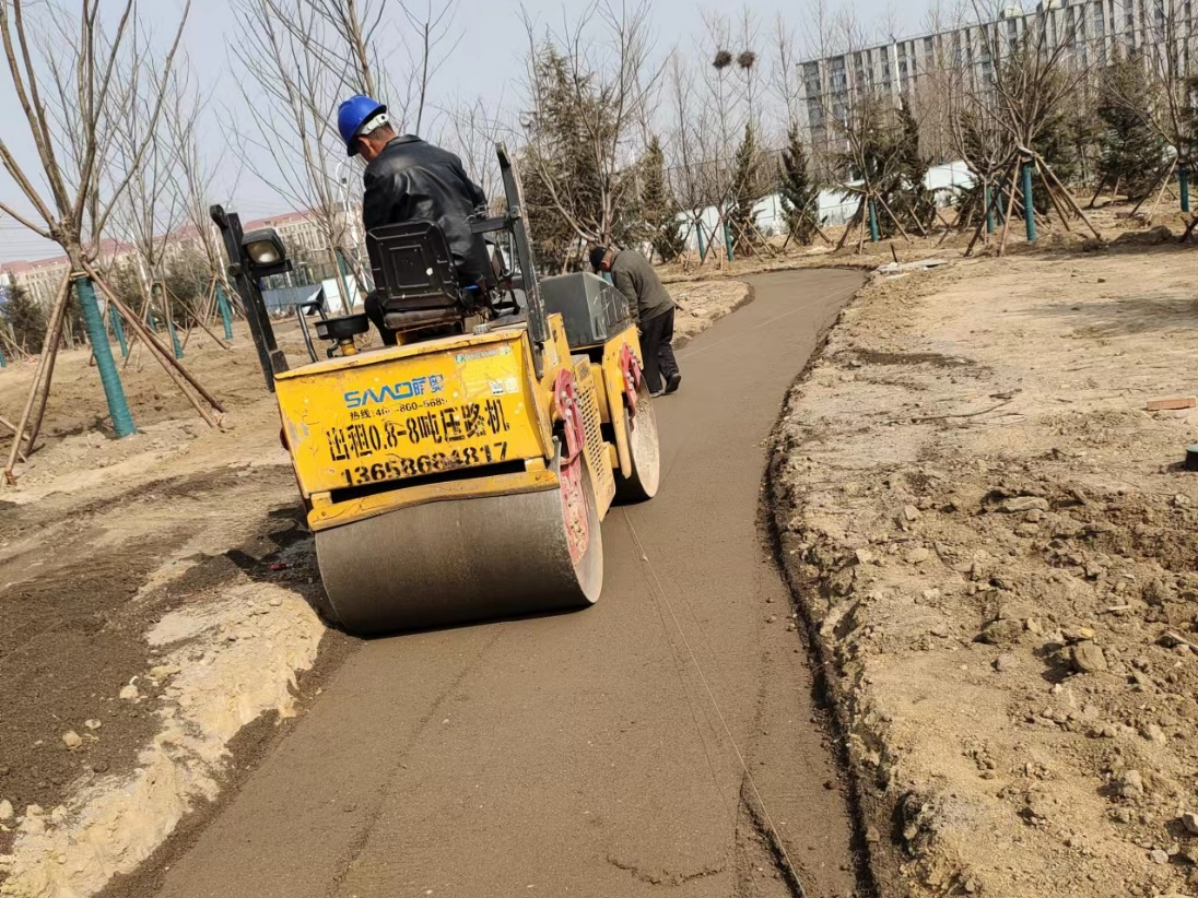 高峪河桥周边景观步行路水泥风化砂垫层施工