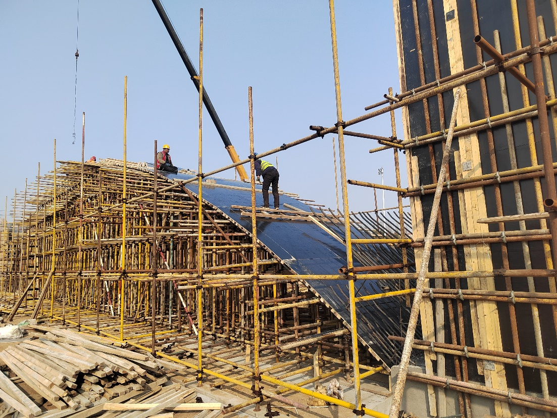 1、高峪河综合治理工程顺利完成拱桥的基础验收,基础回填到相应标高,2月26日完成河底铺砌混凝土浇筑;3月6日完成满堂脚手架搭设及河床整治工作,计划本周完成桥拱钢筋绑扎及模板支设,争取3月中旬浇筑桥拱混凝土;绿化园区道路3月7日完成水泥稳定风化砂垫层,并完成相应的检测工作,预计3月下旬完成绿化乔木种植工作。