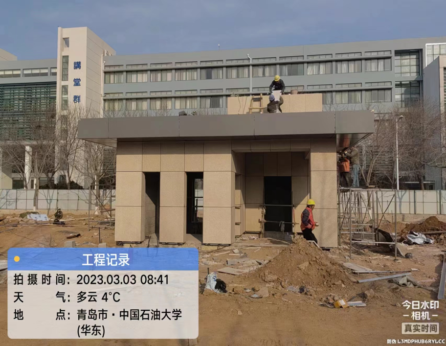 研三北侧热力表房和恢复:正在进行表房主体浇筑工作,沥青路面已摊铺。下步计划完成研究生宿舍三号楼北侧人行道铺装等恢复工作。