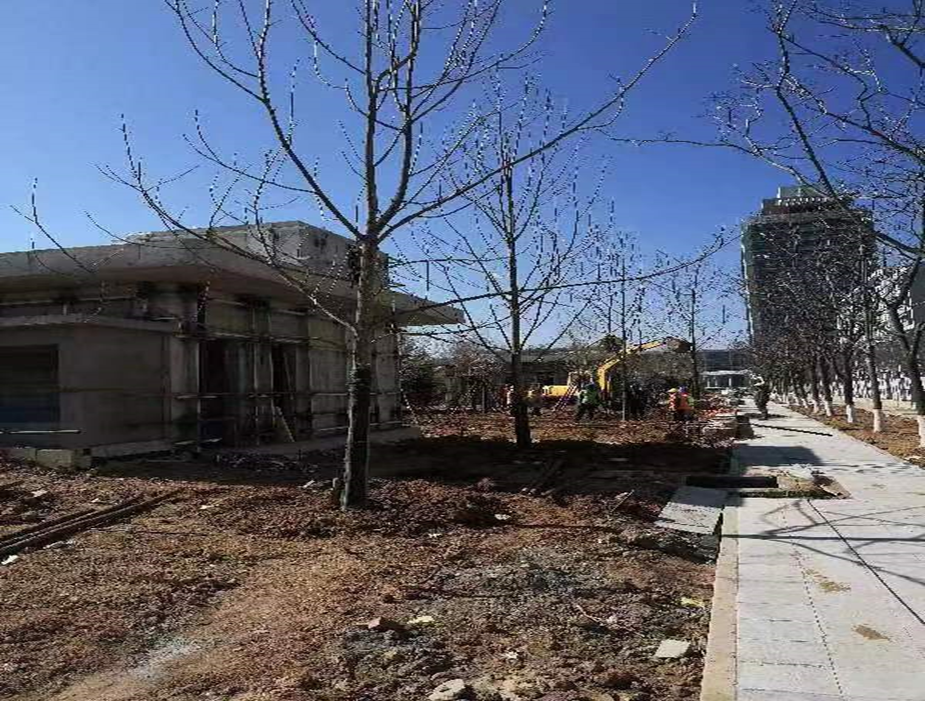 中心绿地项目正按照进度计划稳步推进,计划4月底完成1单元乔木种植和灌木种植,5月底拆除围挡并交付学校。