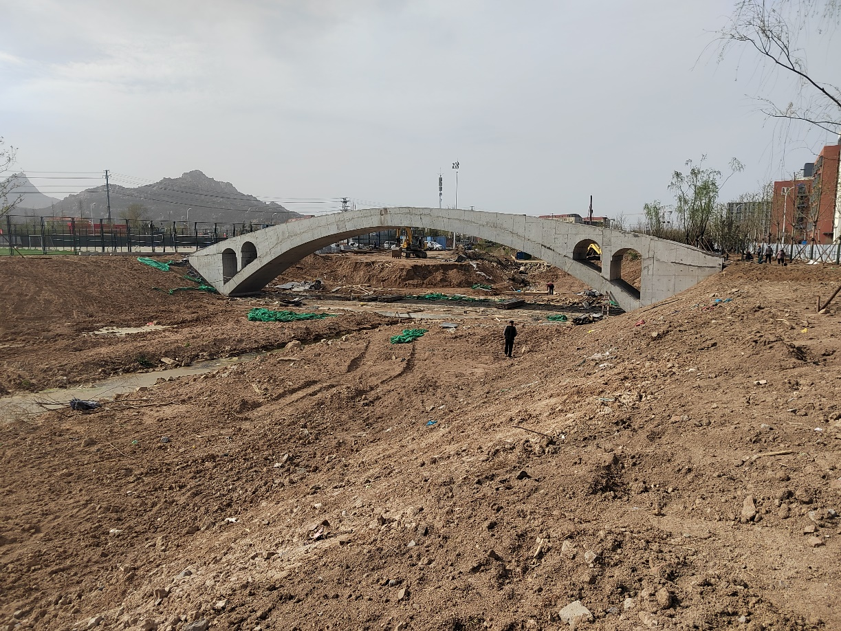 4月3日完成高峪河桥桥面垫层施工,4月10日完成桥拱脚手架拆除;4月13日高峪河周边乔木种植基本完成,预计4月底完成桥梁建设任务;北部绿化园区道路铺装已完成,南部园区道路预计4月底铺装完成;河道整理、种植土回填及地形整理已基本完成,预计4月底完成绿化种植及桥面施工任务,5月份完成项目竣工验收及工程移交。