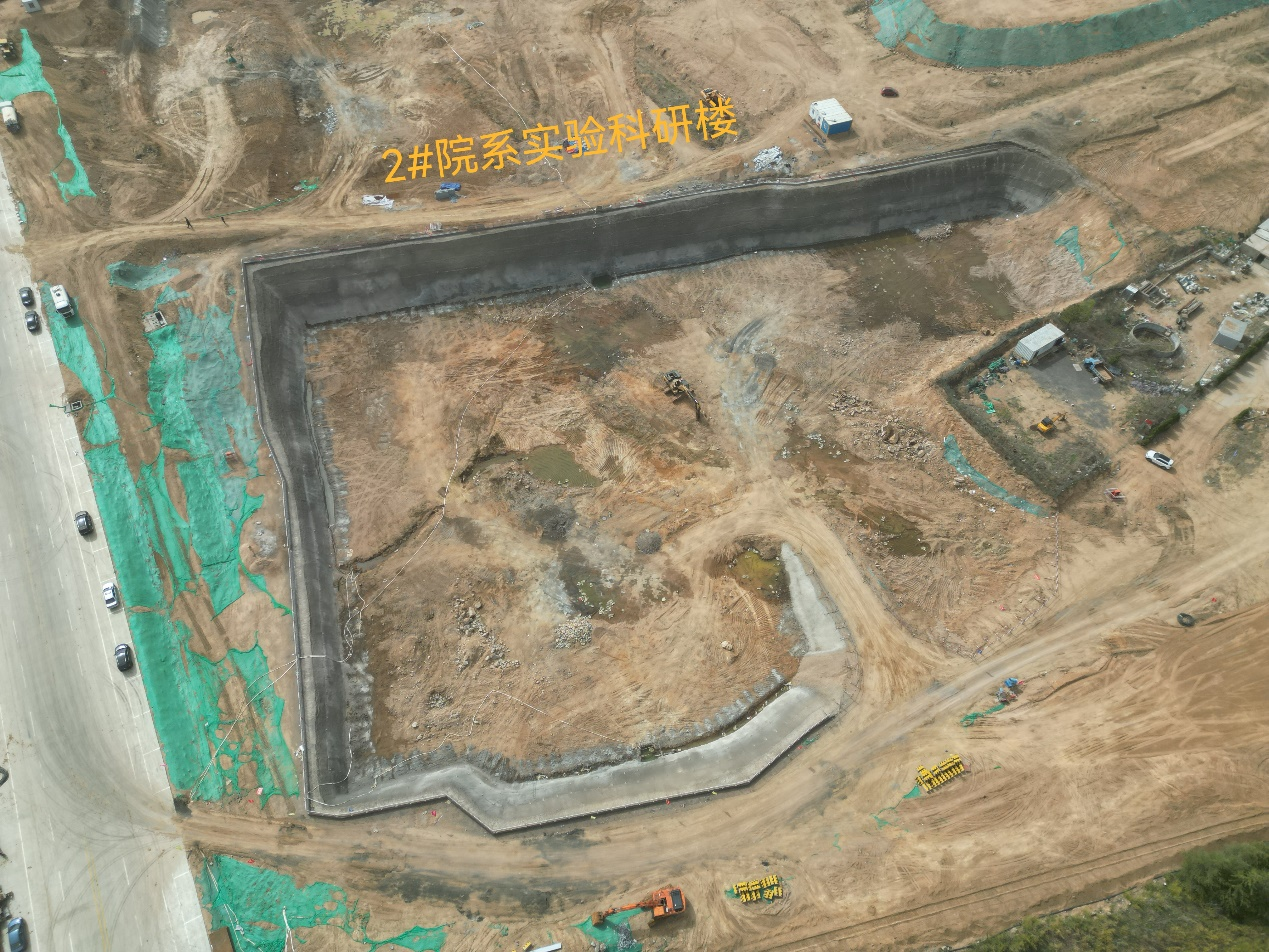 2.目前1#院系实验科研楼土石方开挖外运已完成,2#院系实验科研楼临边防护、土石方开挖外运已基本完成,1#研究生宿舍土石方开挖外运完成65%;教学楼、食堂和师生活动中心基坑石方爆破及土石方开挖外运完成90%;5#本科生宿舍土石方开挖外运完成30%,7#本科生宿舍土石方开挖外运完成70%,6#、8#本科生宿舍土石方开挖外运已完成。因林地清偿等原因,1#-4#本科生宿舍尚未清表完成,因无法进场地勘暂无基坑图纸。施工单位现场办公区搭设已完成;因清偿原因2#院系实验科研楼无法继续开挖,本科生宿舍爆破也受到影响。博士生公寓土石方尚未完成招标,现场土石方未施工。