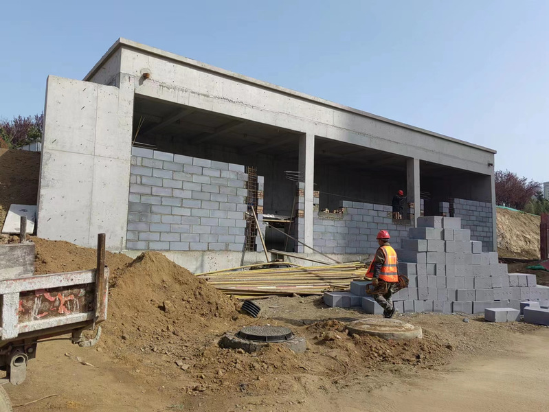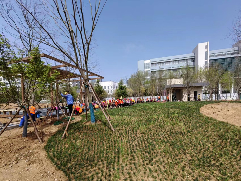 正在进行表房砌筑工作,研三北坡面进行地形整理。计划5月底完成绿化施工并拆除围挡。