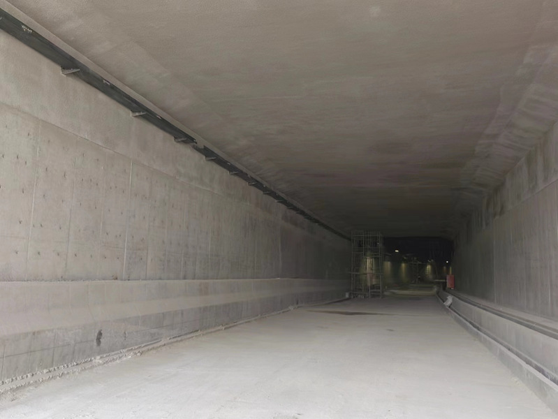隧道正在进行强弱电桥架、管线安装等工作,预计7月底完成施工。