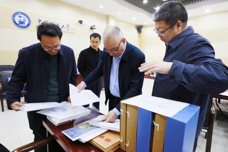 调研组查阅并审核学校基本建设情况 杨安摄影