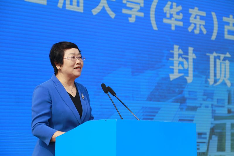 毛军响代表西海岸新区工委、管委对封顶活动表示祝贺,向参与项目建设的全体工作者表示感谢。他表示,本次封顶活动标志着新区与石油大学校城深度融合、协同共赢发展取得新突破,希望各方精诚合作、再接再厉,高标准高质量做好项目后续建设工作,助力中国特色能源领域世界一流大学建设。