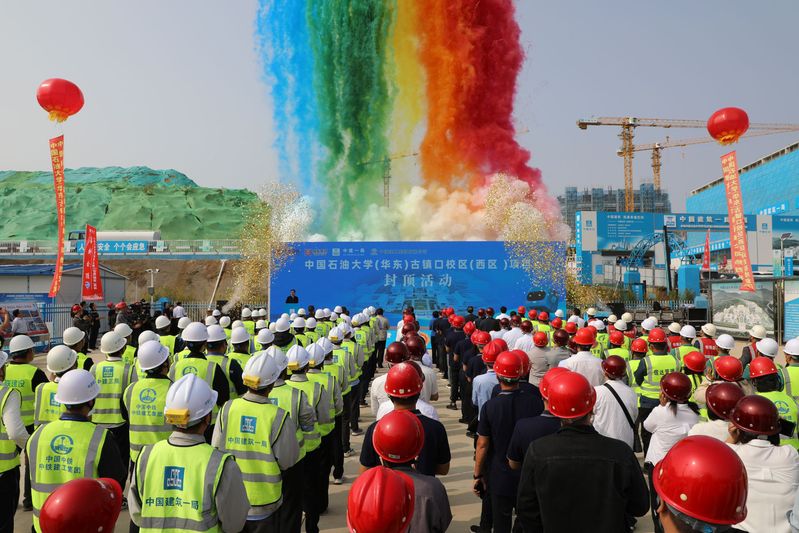 古镇口校区是学校实施“融入青岛,服务山东”“双轮驱动”“校城融合”等发展战略的重要举措,是建设中国特色能源领域世界一流大学的基础性、战略性支撑和保障工程,是关乎学校发展和服务地方的百年大计。古镇口校区(西区)占地面积807亩,规划建设面积约72万平方米。此次封顶的一期建设工程共计32栋单体,约50万平方米,于2022年11月开工建设,计划于2025年9月建成并投入使用,将入驻高端化工、高端装备、新能源、新材料、海洋等学科师生约12000人。一期建设项目的全面封顶是加快推进校区建设的重大举措,更是对校区建设进度的全面检阅和阶段性成果。